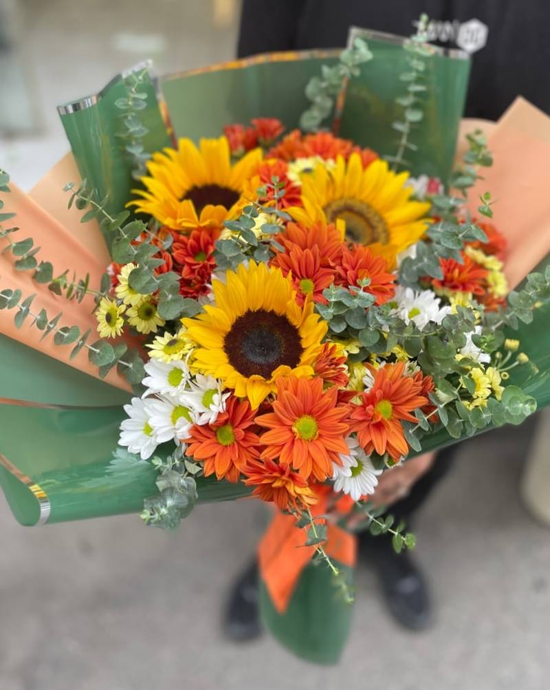 یک ترکیب جذاب و پاییزی با گل های آفتابگردان و داوودی را تجربه کنید. این دسته گل زیبا با ترکیب منحصر به فرد خود، حس گرم و دلنشین فصل پاییز را به فضای شما می آورد. گل های آفتابگردان با شکوفه های بزرگ و زرد رنگ خود نماد شادی و انرژی هستند و در کنار گل های داوودی با تنوع رنگی و ظرافت فوق العاده، ترکیبی چشمگیر و ماندگار خلق می کنند. این دسته گل انتخابی ایده آل برای تزئین منزل، محل کار و یا هدیه دادن به عزیزان در این فصل از سال است. از زیبایی و طراوت این ترکیب پاییزی نهایت لذت را ببرید.