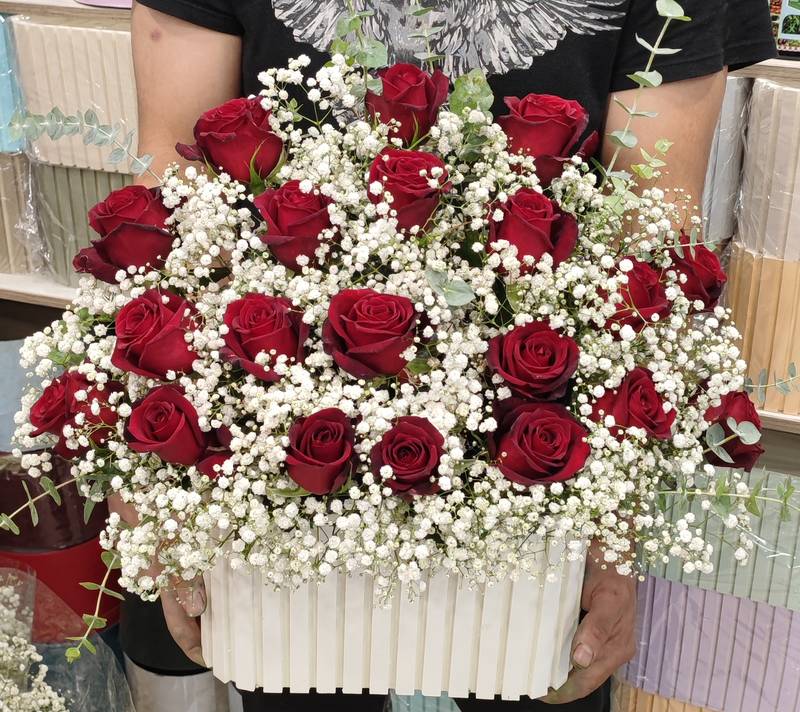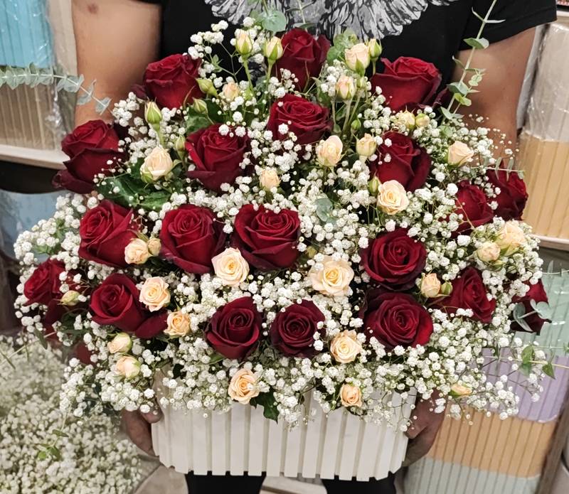 باکس گل رز و رز مینیاتوری یکی از محبوب ترین و پرطرفدار ترین دسته گل های موجود است که ترکیبی بی نظیر از زیبایی و ظرافت را به نمایش می گذارد. این مجموعه چشم نواز شامل گل های رز با شکوه و کامل به همراه رزهای مینیاتوری کوچک و دوست داشتنی است که کنار هم جلوه ای خاص و مدرن خلق می کنند. در کنار این گلها، شاخه های ظریف و ابرمانند ژیپسفولیا قرار گرفته که با شکوفه های ریز و سفید خود فضایی رویایی و سبک به مجموعه می بخشد. همچنین برگ های زیبا و نقره فام اوکالیپتوس با فرم منحصر به فرد خود عمق و بافتی لوکس به این ترکیب اضافه می کند. این باکس گل که با دقت و سلیقه بالا طراحی و آماده شده است، انتخابی ایده آل برای مناسبت های ویژه مانند سالگردها، تولدها، ابراز علاقه و سپاسگزاری می باشد. این هدیه بی نظیر حس شادی و تحسین را به مخاطب شما منتقل کرده و با ماندگاری مناسب خود، یادبودی به یاد ماندنی از آن لحظه خاص خواهد بود.