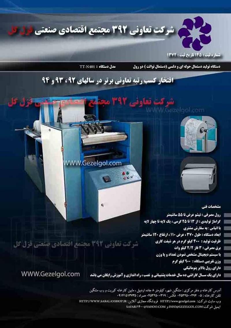 ارائه تجهیزات مورد نیاز به صورت کامل برای تولید دستمال کاغذی و سایر محصولات مشابه