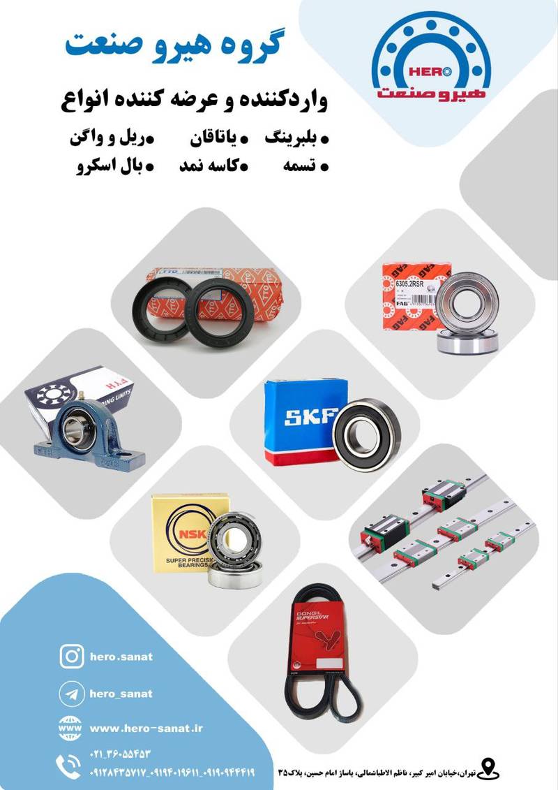 هیرو صنعت در تهران واردکننده و عرضه کننده انواع بلبرینگ، یاتاقان، کاسه نمد و تسمه، واردات و ساخت انواع تسمه های صنعتی، نوار نقاله، انواع کاسه نمدهای لاستیکی و فلزی می باشد.