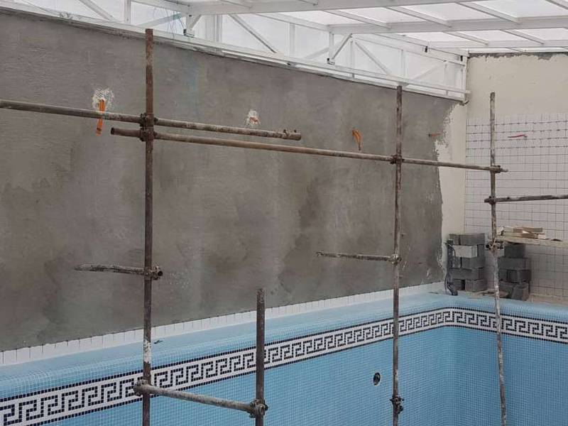 ◇مرحله بعد آرماتوربندی کف استخر با میلگرد است که به صورت شبکهای در کف و دیواره استخر قرار میگیرد.