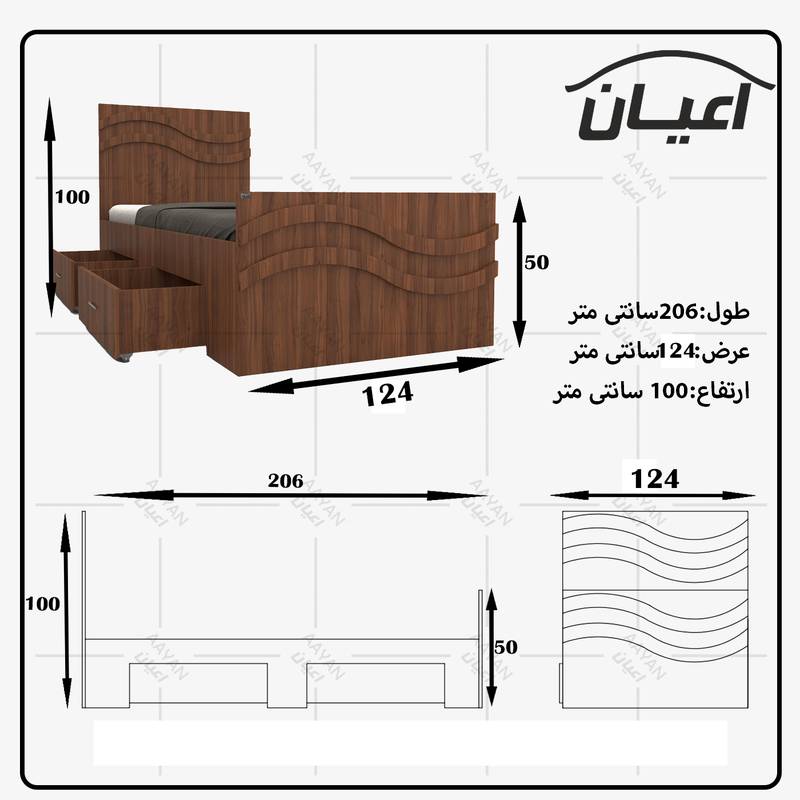 تخت خواب یکنفره اعیان مدل FH582 سایز 120x200 سانتی متر