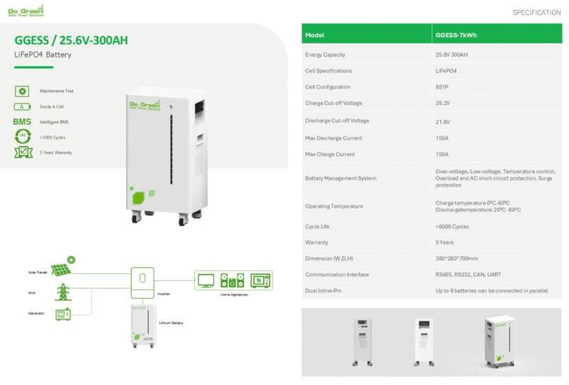 اگر به دنبال یک باتری لیتیومی پرقدرت و مطمئن برای سیستمهای خورشیدی یا ذخیرهسازی انرژی هستید، مدل GGESS-10kWh برند Go Green بهترین انتخاب است. این باتری از نوع LiFePO4 (لیتیوم آهن فسفات) ساخته شده و با ظرفیت 200Ah معادل 10,000Wh، میتواند برای سالها نیاز شما به انرژی پایدار و قابل اعتماد را تأمین کند.