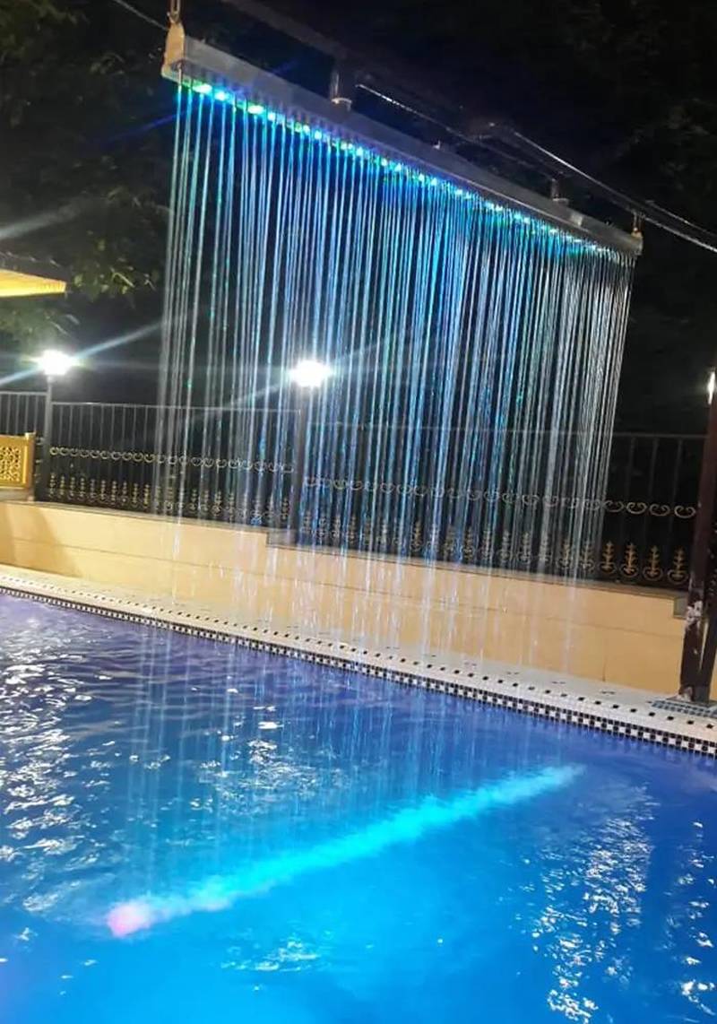 شرکت استخر سازی سوما علاوه بر ساخت استخر شنا در گیلان و رشت، در زمینه طراحی و اجرای آبنماهای مدرن نیز فعالیت میکند. یکی از پروژههای شاخص ما در لاهیجان، اجرای یک آبنمای بارانی دو ردیفه همراه با پرده آب کرتین شوتر است که جلوهای منحصربهفرد به محوطه بخشیده است.
