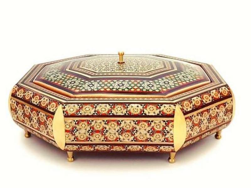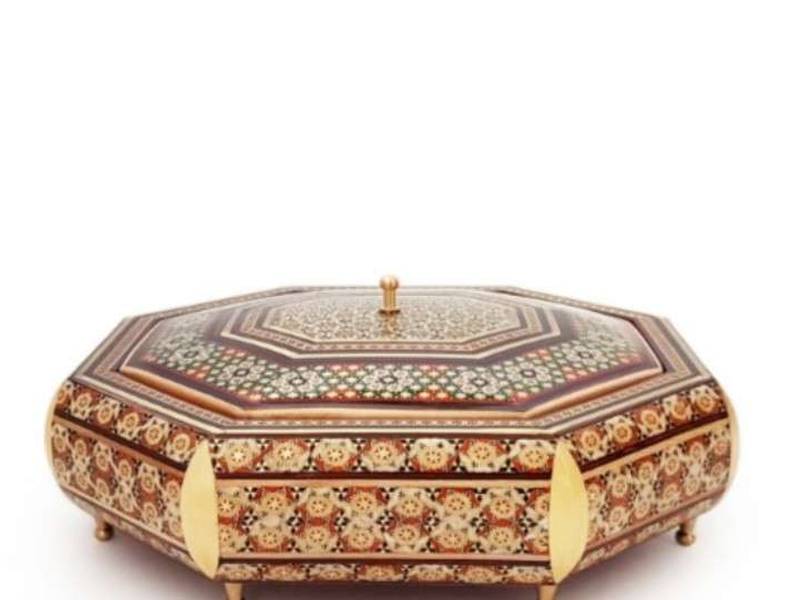 شکلات خوری خاتم کاری شده رامیتوانیدهم بصورت کاربردی وهم برای تزیین فضای دکوری منزل خوداستفاده کنید .استفاده ازشکلات خوری هشت ضلعی برروی میزکارجلوه زیبایی به دفترشمامیدهد.قیمت محصولات خریدخاتم کاری درتهران برای مشتریان درنظرگرفته میشود تادرتیتراژبالابرای هدایای تبلیغاتی قابل سفارش می باشد. شکلات خوری هشت ضلعی خاتم کاری شده ازچوب درخت راش؛ گردو؛عناب؛نارنج؛فلز؛برنج واستخوان شترمی باشد.ابعادشکلات خوری درحدود۲۲×۲۳وارتفاع ان ۷سانتی متراست .شکلات خوری هشت ضلعی خاتم طوری ساخته شده که قابل استفاده می باشد.پس ازساخت برروی خاتم ان لایه ای ازپلی استر کشیده میشودتابرق وجلای بیشتری پیداکند.