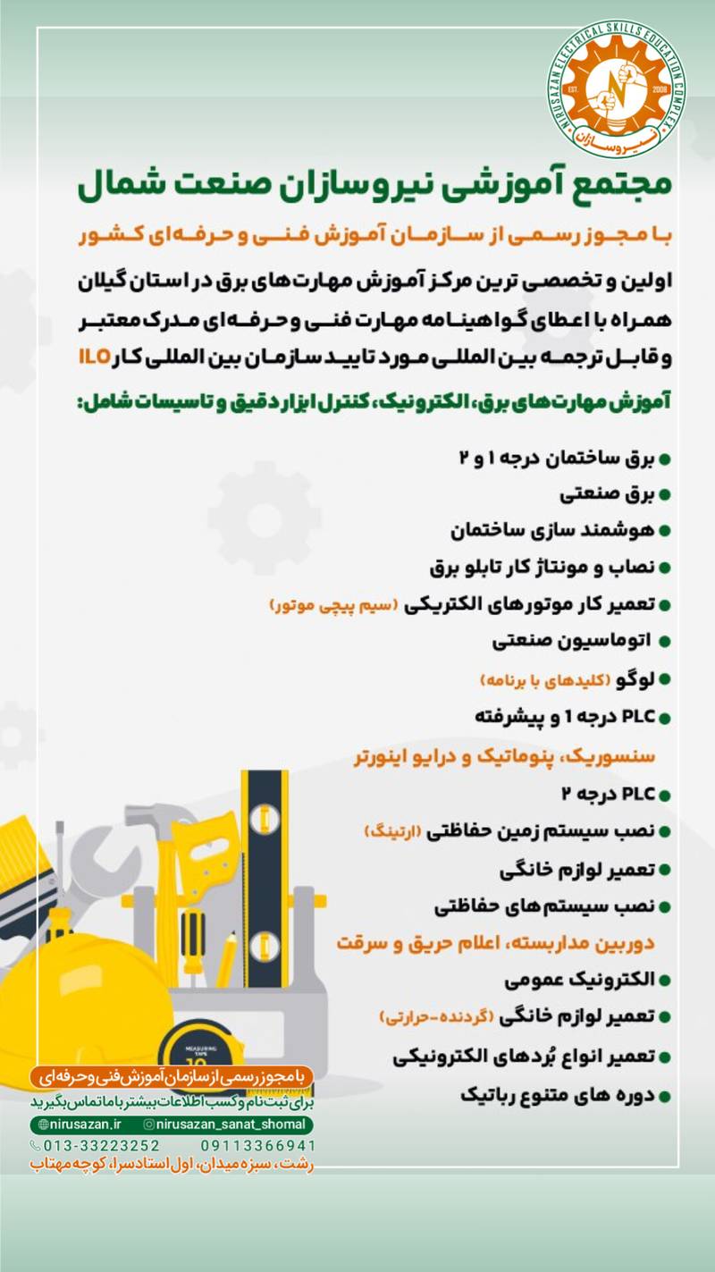 مجتمع آموزشی نیروسازان صنعت شمال با پشتوانه چند دهه سابقه و تجربه بهترین گزینه برای فراگیری مهارت های فنی و حرفهای کاربردی و درآمد زا میباشد
