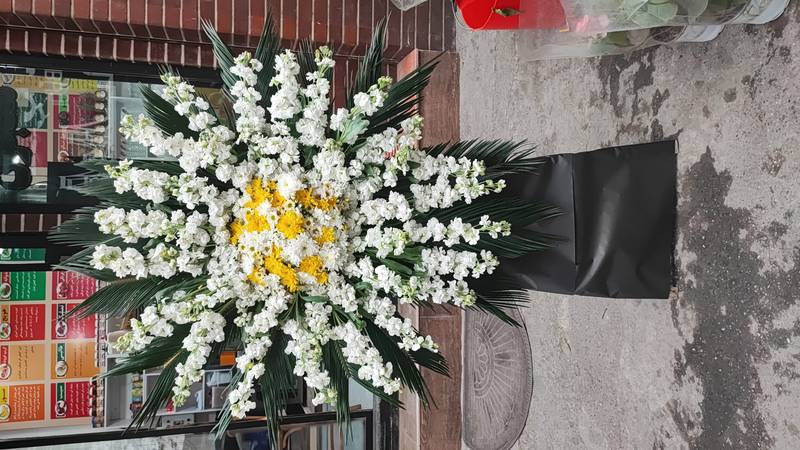 این تاج گل به دلیل ساختار مدور و یکپارچه خود، جلوهای باشکوه و رسمی دارد و اغلب در مراسم ترحیم، بر مزار یا در کنار تصویر متوفی قرار میگیرد. انتخاب گلهای با دوام و رنگهای ملایم و متعارف مانند سفید، کرم، بنفش و سبز، نشاندهنده احترام، آرامش و یادبودی ماندگار است.