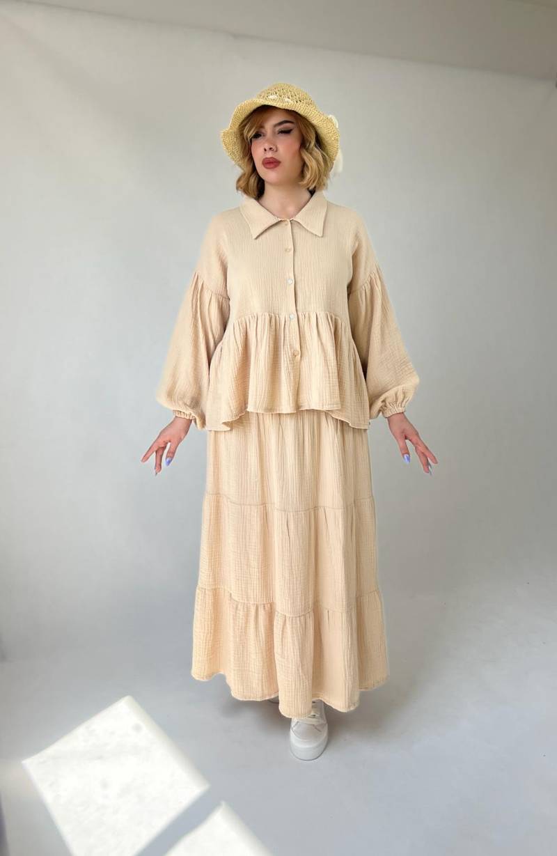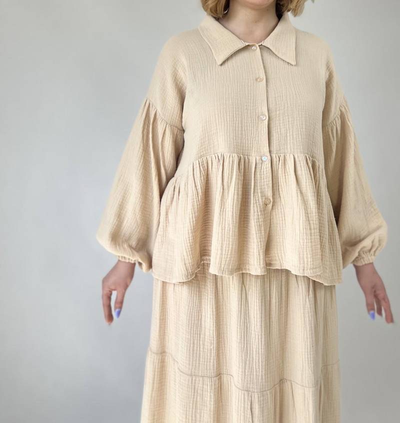 این شومیز دامن تابستانی با پارچهای نرم و لطیف، حس راحتی بینظیری به شما میدهد و برای مهمانیهای سبک، پیکنیک یا حتی استفاده روزمره گزینهای عالی است.