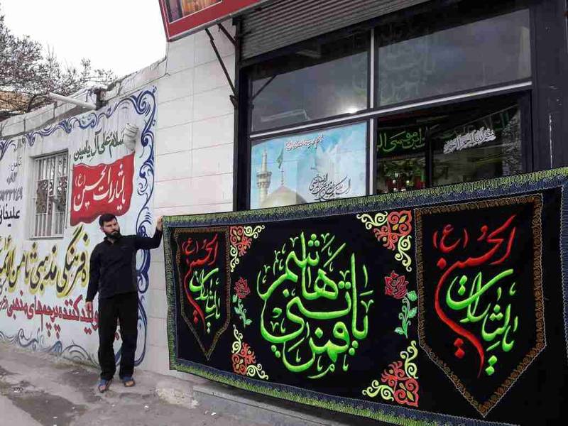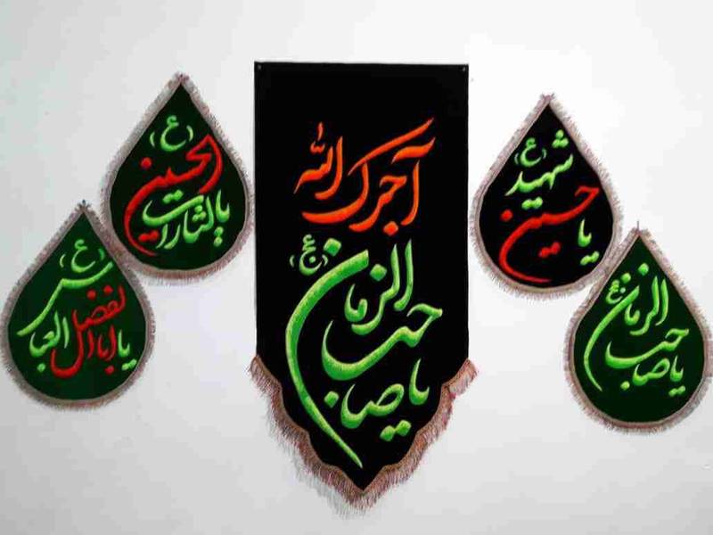 دوخت پرده به صورت ترمه با متن های مذهبی و رنگ های متنوع