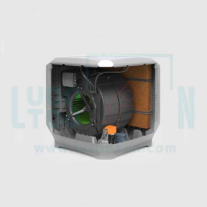 جنس بدناوی پلیمری با کیفیت بالا، مانع انتقال گرمای محیط بیرون به داخل کولر شده و از ایجاد هوای شرجی جلوگیری می کند. این ویژگی در کولرهای سنتی با بدنه ی فلزی وجود ندارد و باعث کاهش راندمان سرمایشی می شود.