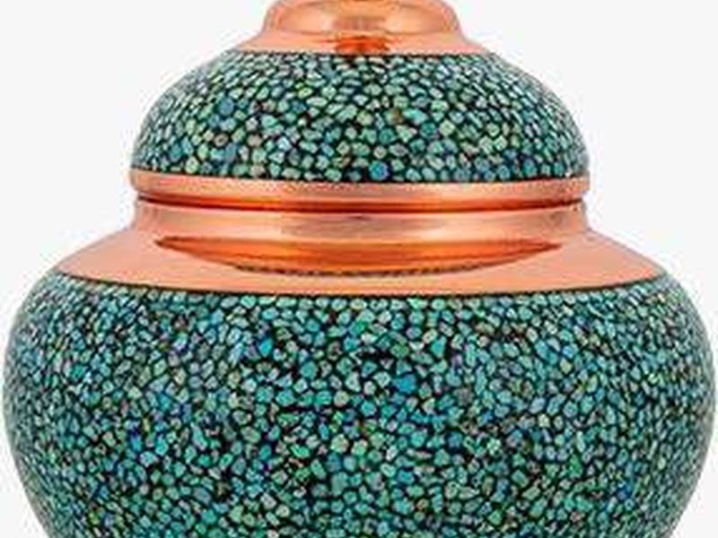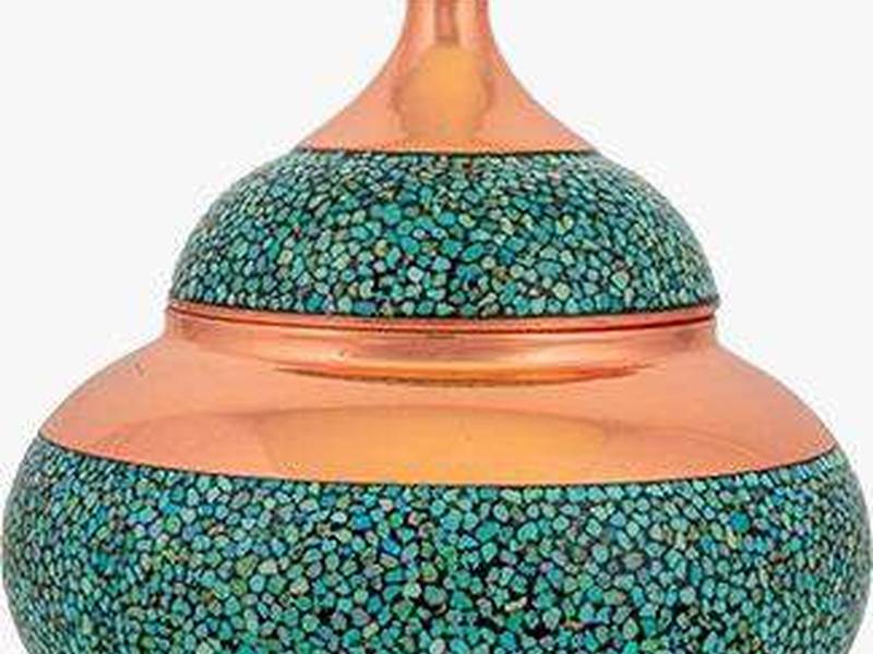 قندان فیروزه کاری شده هم کاربرد مصرفی و هم تزئینی دارد. رنگ بدنهی این قندان فیروزهای و مسی است. جنس قسمت خارجی بدنهی آن از فیروزه و مس هست