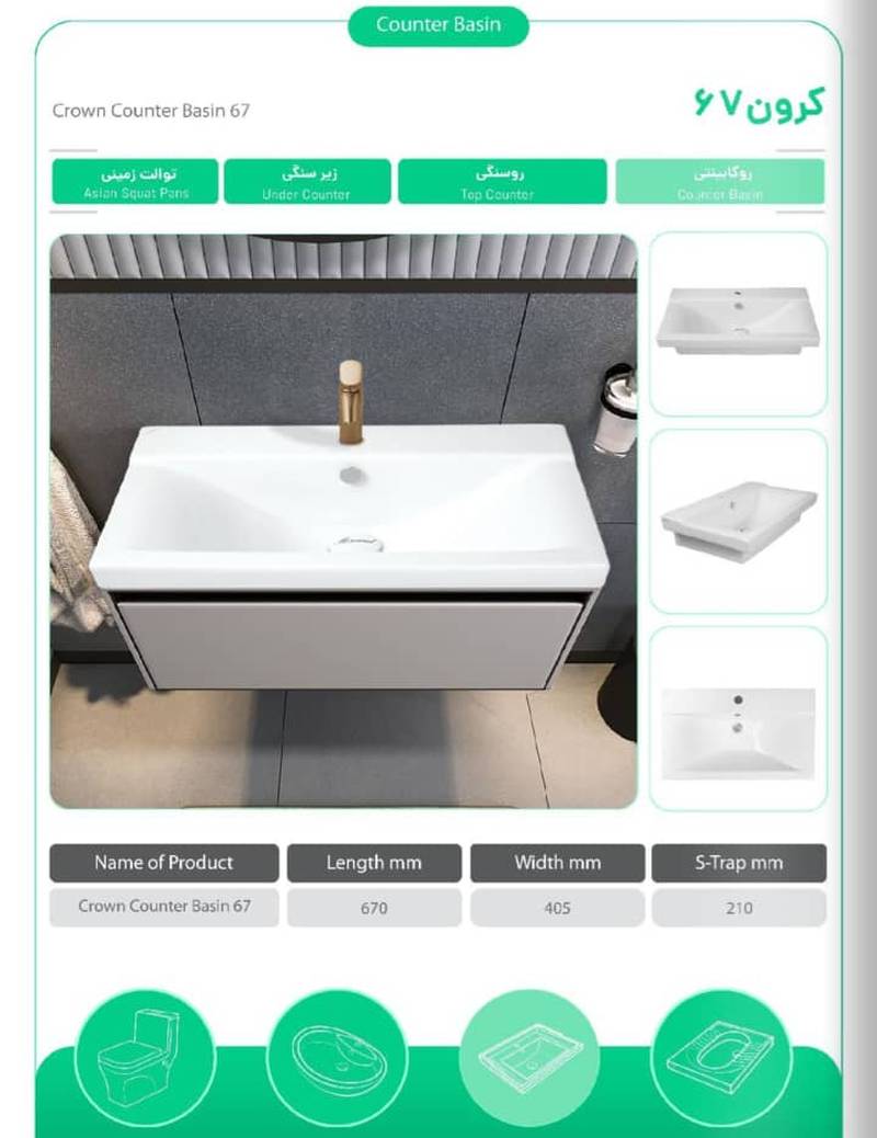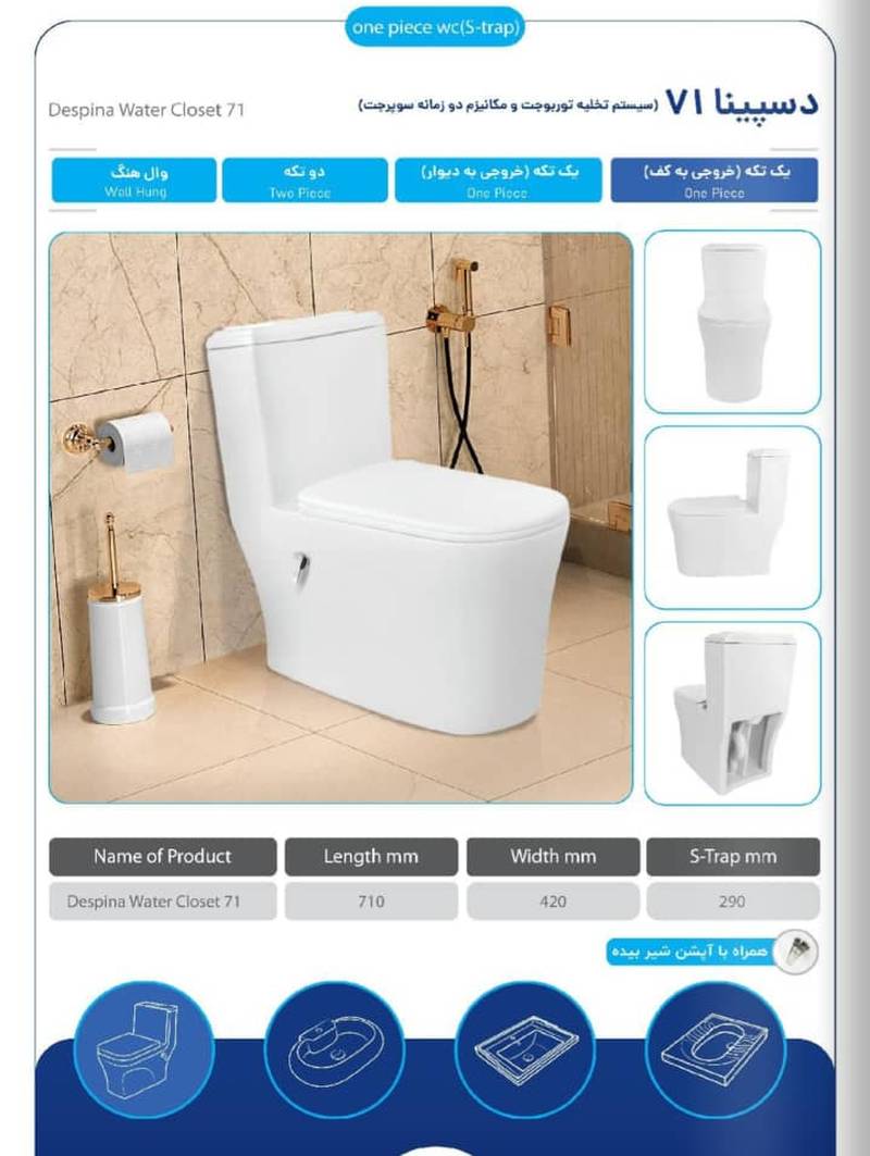 چینی بهداشتی مروارید با تنوع در طرح و مدل، پاسخگوی سلیقه های مختلف است و به راحتی با هر دکوراسیونی هماهنگ می شود. این محصول ترکیبی است از هنر، تکنولوژی و دوام که تجربه ای لذت بخش و بهداشتی را برای شما و خانواده تان فراهم می سازد.