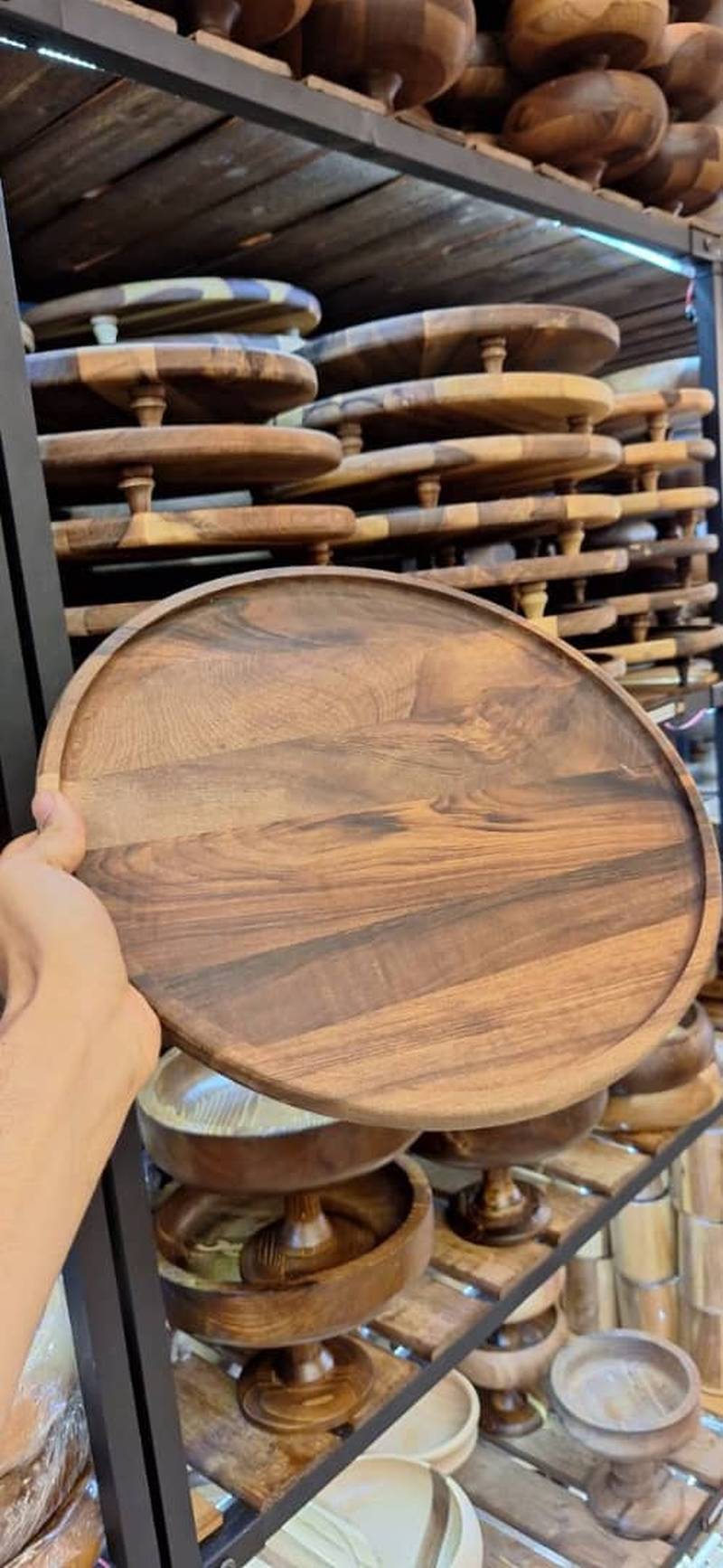 سینی گرد قطر 35 سه پایه دار چوبی گردو