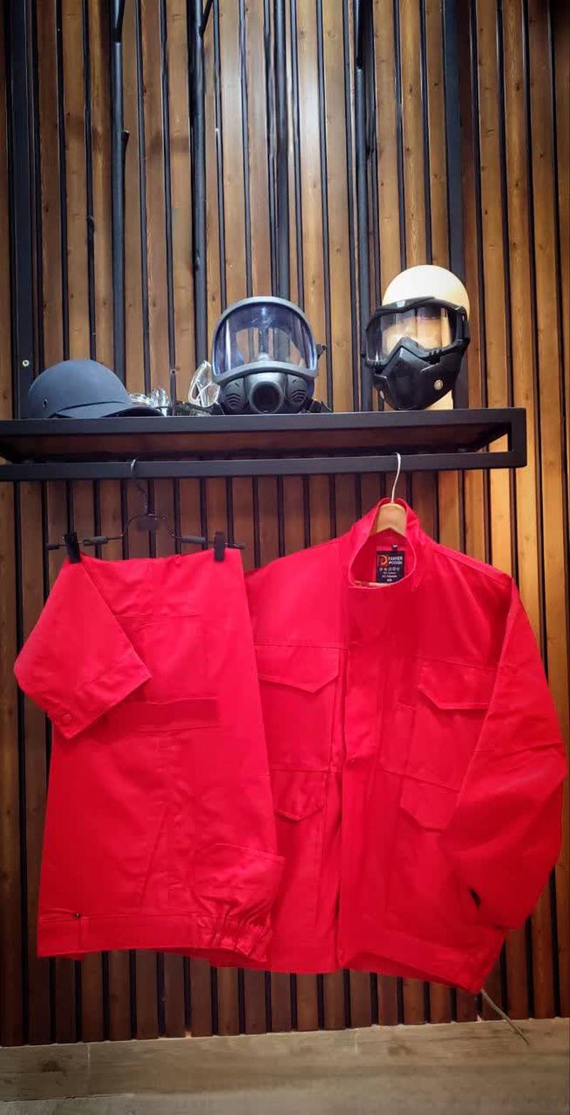 جنس این لباسها معمولاً از پارچههای مقاوم و با کیفیت مانند چرم یا کتان سنگین ضدحریق انتخاب میشود که توانایی تحمل درجه حرارت بالا را داشته و به سرعت آتش نمیگیرد. طراحی آن اغلب به صورت بلند و گشاد است تا امکان حرکت راحت و همچنین پوشش کامل بدن را فراهم آورد. بخشهایی مانند آستینها و ساق شلوار اغلب به صورت ضخیمتر دوخته میشوند تا بیشترین حفاظت در نواحی پرخطر ایجاد شود.