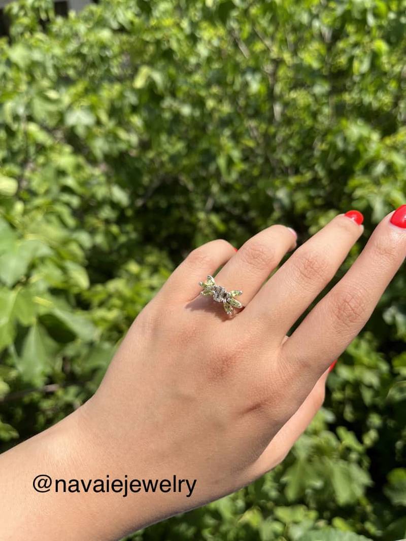 این انگشتر جواهر نقره با دقت و ظرافت خاص توسط استادکار جوان اتوسا نوائیراد طراحی و ساخته شده است. هر قطعه از این انگشتر نمادی از خلاقیت، مهارت و هنر استادکار است و جلوهای منحصر به فرد به استایل شما میبخشد.