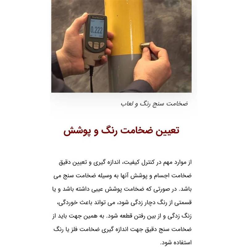 از موارد مهم در کنترل کیفیت اندازه گیری و تعیین دقیق ضخامت اجسام و پوشش آنها به وسیله ضخامت سنج می باشد. در صورتی که ضخامت پوشش عیبی داشته باشد و یا قسمتی از رنگ دچار زدگی شود میتواند باعث خوردگی زنگ زدگی و از بین رفتن قطعه شود به همین جهت باید از ضخامت سنج دقیق جهت اندازه گیری ضخامت فلز یا رنگ استفاده شود.