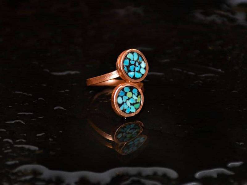 انگشتر فیروزه کوبی با زیرساخت مس