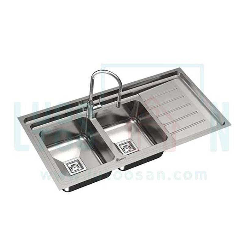 سینک روکار بیمکث مدل 925 به صورت دو لگنه با ابعاد 60*120 سانتی متر، عمق 19.5 سانتی متر و تک سینی عرضه گردیده است. نوع استیل به کار رفته در این سینک، ورق استنلس استیل 304 با ضخامت ورق 0.7 میلیمتر می باشد.