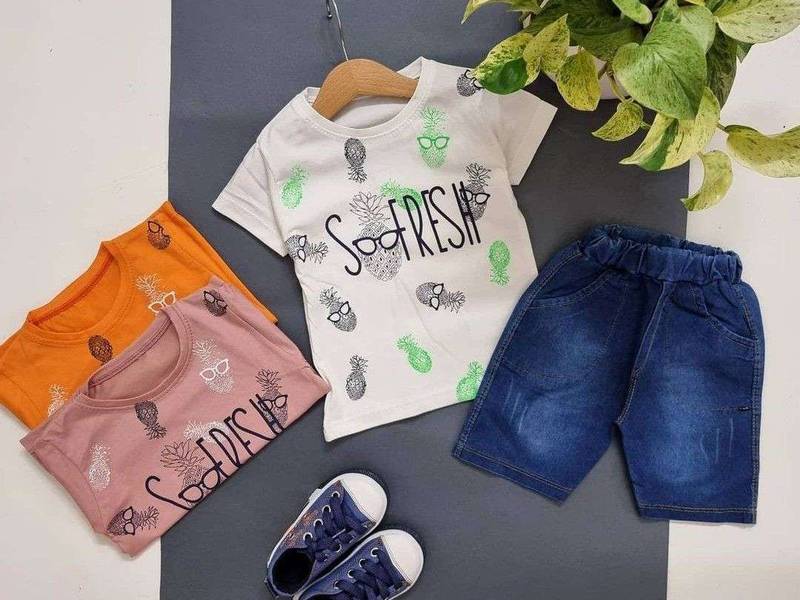 ست اسپرت تیشرت پنبه شلوارک لی کاغذی در بابل