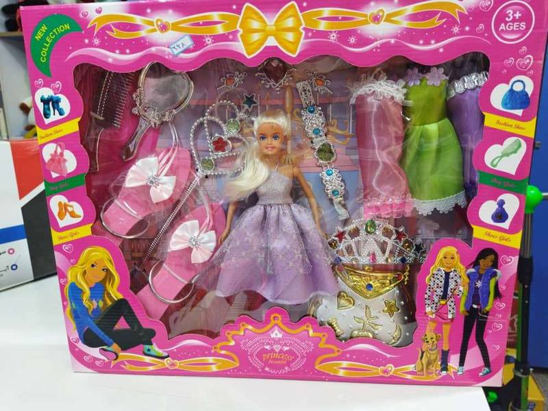 عروسک باربی مفصلی ، که همراه وسایل دو لباس کفش و .. میباشد