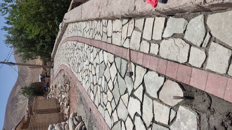 پس از قرار دادن تمامی سنگها، کنارهای دیوار را با ملات پر کنید تا دیوار متماسک و زبا شود.