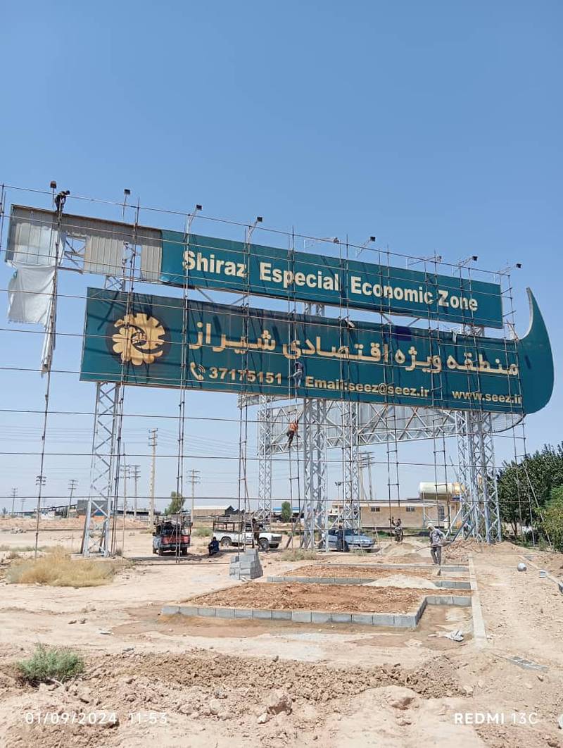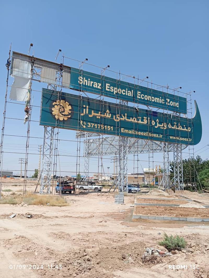 اجرای داربست جهت ترمیم تابلو منطقه ویژه اقتصادی شیراز پل فسا
