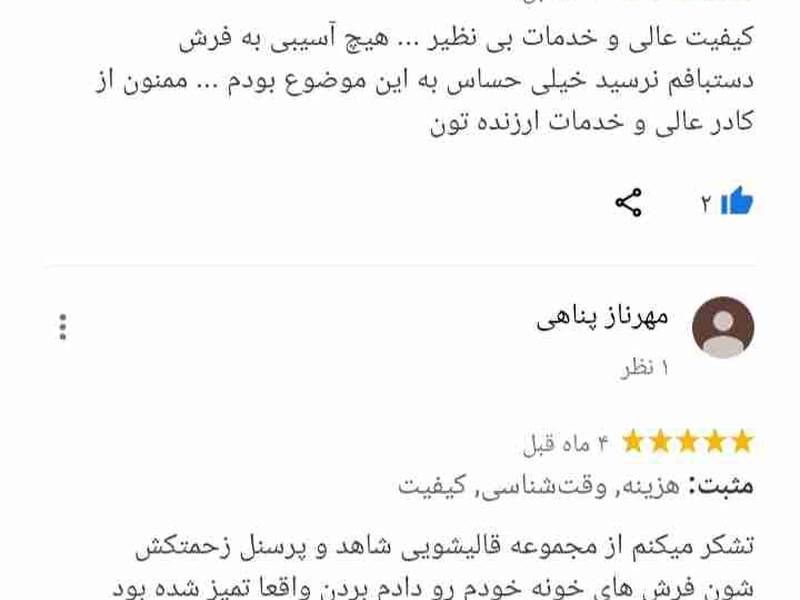 نظرات کاربران درباره قالیشویی و مبل شویی شاهد