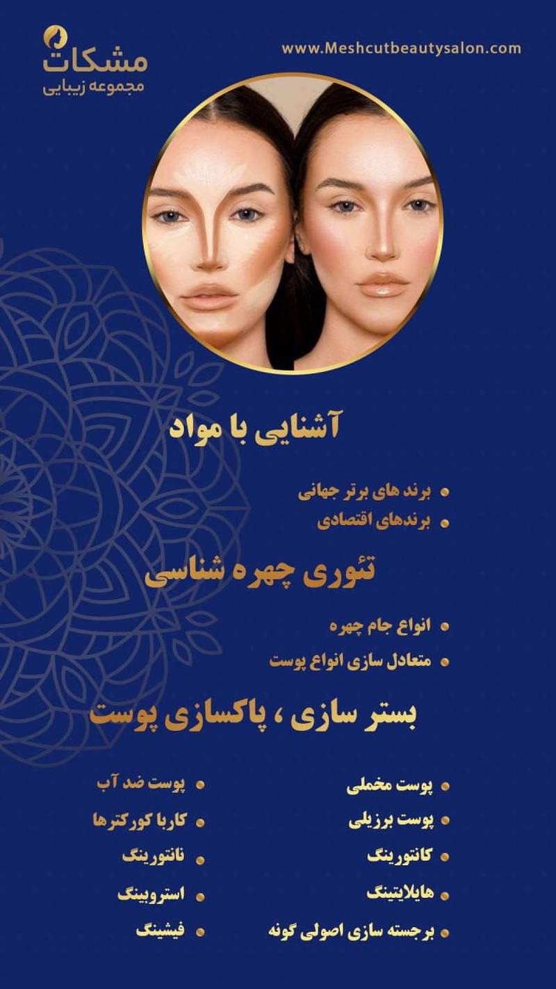 عروس سرای مشکات با کادری مجرب و حرفه ای در زمینه ی میکاپ و شینیون عروس، رنگ و لایت، کاشت ناخن و آرایش دائم، میکروپیگمنتیشن و ..آموزش در تمامی لاین ها در شهر ری