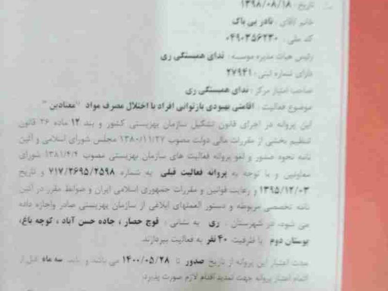موسسه ترک اعتیاد ندای همبستگی ری