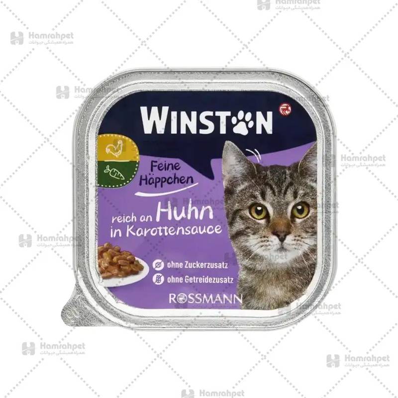 ووم گربه وینستون با گوشت مرغ در سس هویج وزن 100 گرم