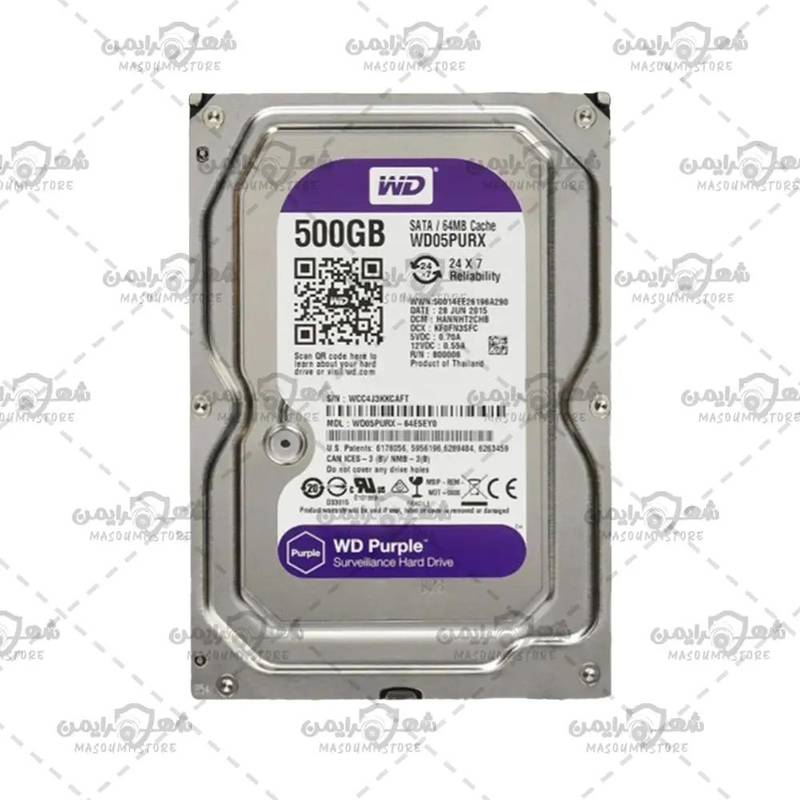 هارد ۵۰۰ گیگابایت وسترن بنفش WD Purple مناسب DVR و NVR – مخصوص ضبط دائم تصویر دوربین مداربسته