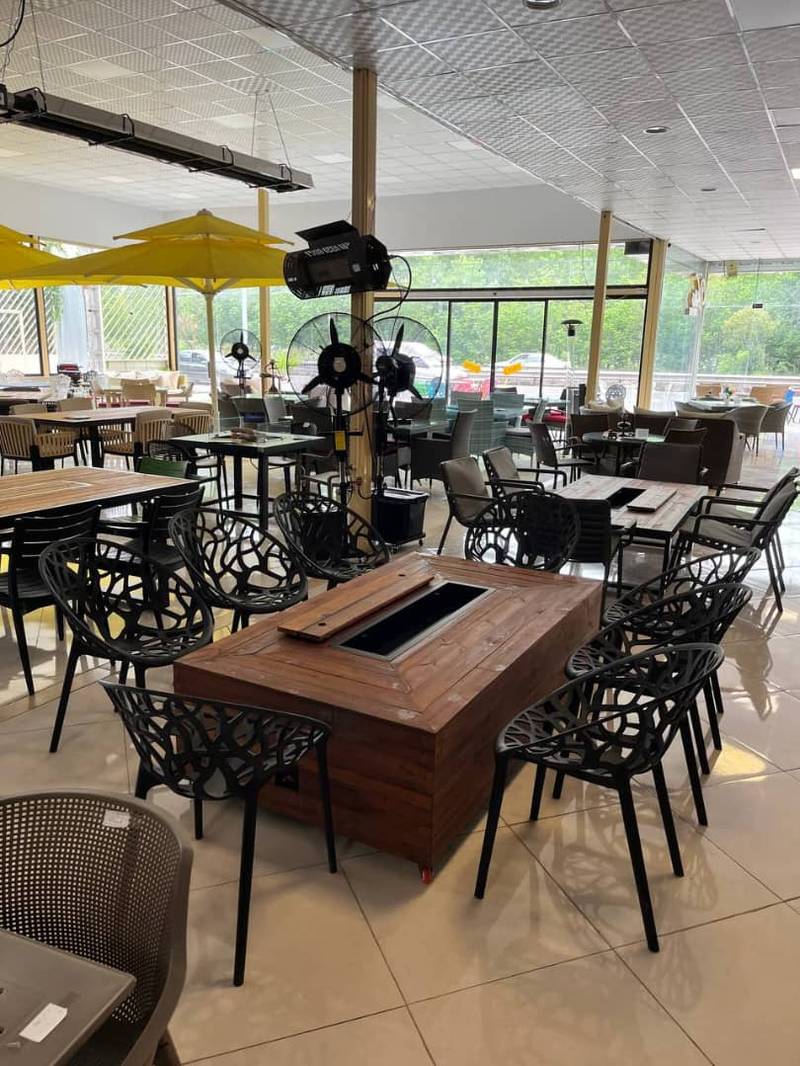 صندلی شاخ و برگی پلیمری و میز آتشدان باکس دور ترمو