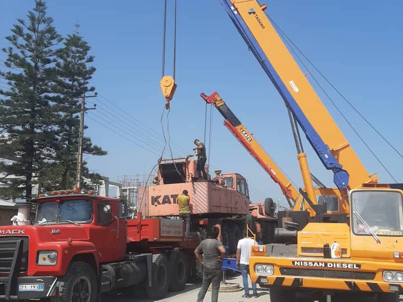 دمونتاژ جرثقیل ۱۲۰ تن کاتو توسط جرثقیل ۵۰ و ۲۵ تن