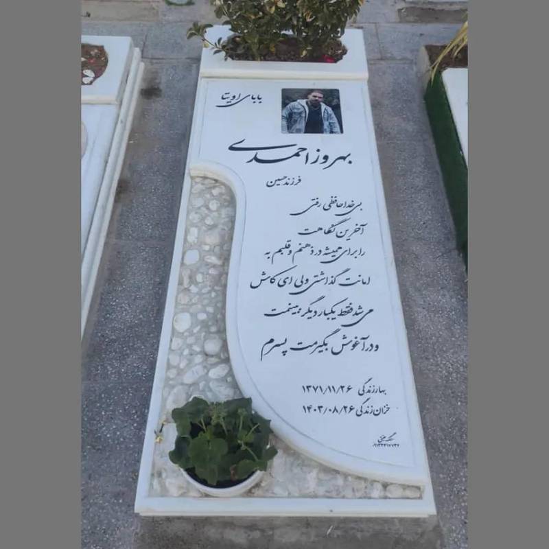 ارائه سنگ مزار با طرح شمشیری از مرمر درجه یک هرات، دوبل شده برای استحکام و زیبایی بیشتر! انتخابی خاص و ماندگار برای یادبود عزیزانتان، با طراحی فاخر و حکاکی دقیق.