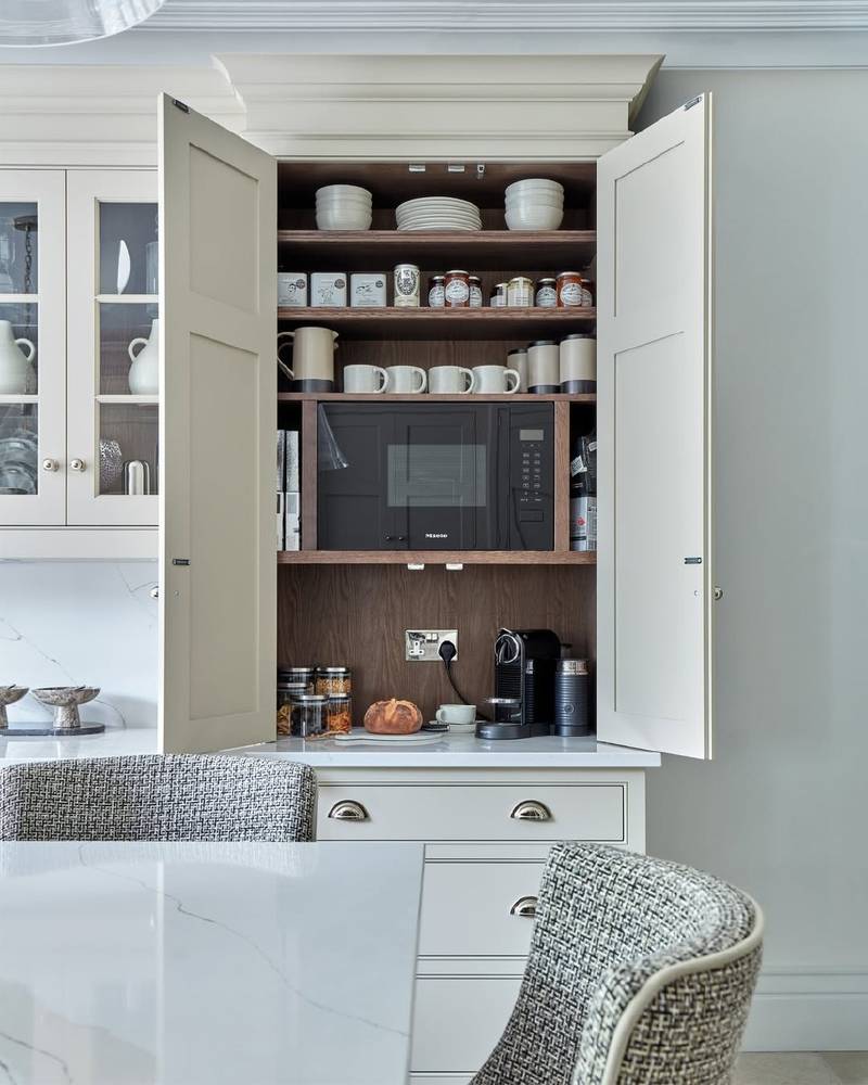 طراحی سوپریهای جادار و کاربردی برای نگهداری مواد غذایی و لوازم آشپزخانه با استفاده از چوب مقاوم و باکیفیت.