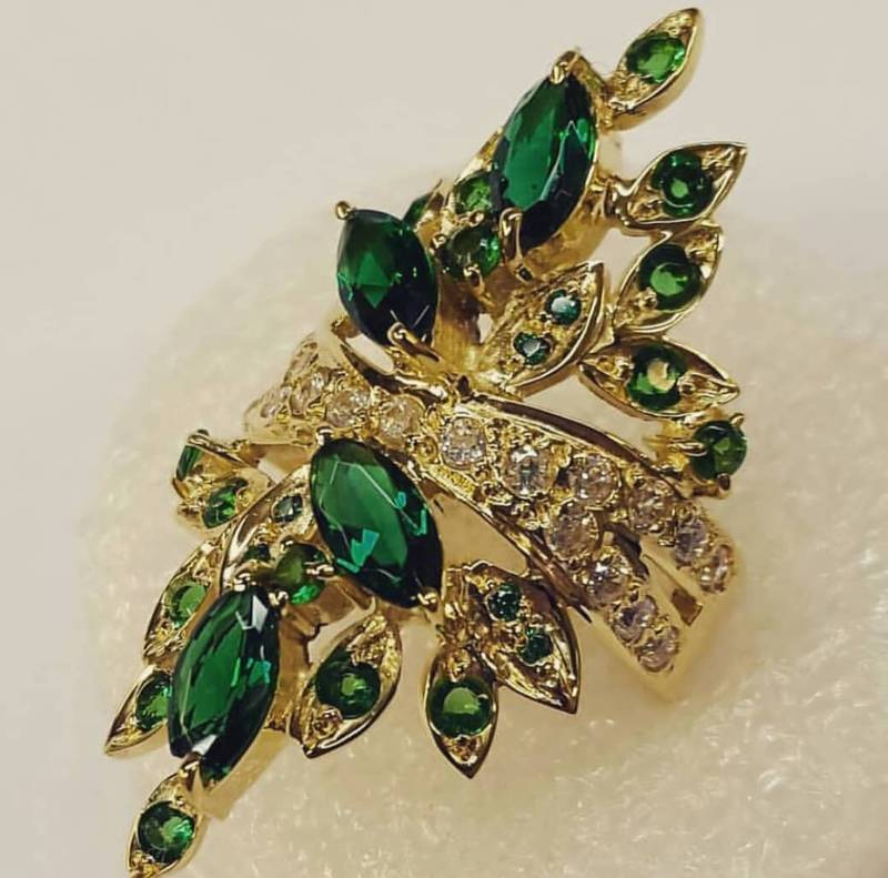 انگشتر طلای زینتی با نگینهای سبز، محصولی استثنایی و دستساز از آموزشگاه مارلیک در رشت است که زیبایی منحصربهفرد و کیفیت بالای ساخت را یکجا ارائه میدهد. این انگشتر با وزن ۱۰٫۸۰۰ گرم از طلای مرغوب ساخته شده و درخشش خیرهکننده آن با نگینهای سبز به وزن مجموع ۴٫۵ قیراط تکمیل میگردد.