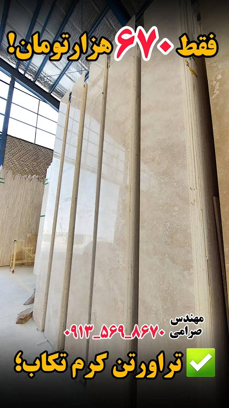 برای خرید سنگ تراورتن کرم تکاب با قیمت کارخانه و دریافت مشاوره تخصصی، می توانید با مهندس صرامی تماس بگیرید. ارسال به سراسر کشور انجام می شود.