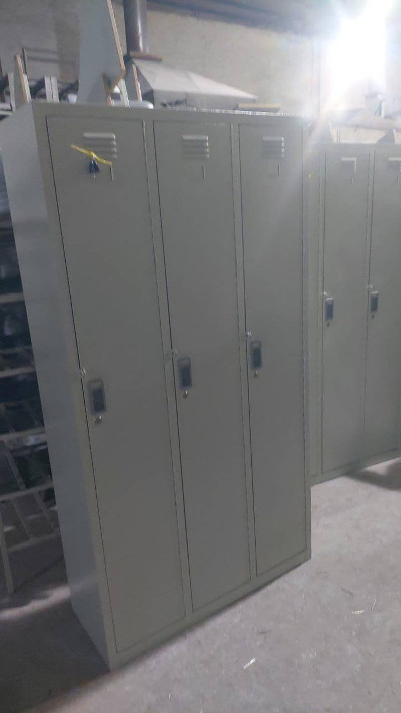 کمد فلزی ۳ درب (Locker) معمولاً از ورق فولادی ساخته میشود و برای نگهداری لباس و وسایل شخصی در محیطهای مختلف مثل: