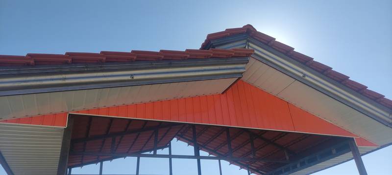 اجرای آلاچیق سواره پیاده با سفال طبرستان و با ورق رنگی در علی آباد اصفهان