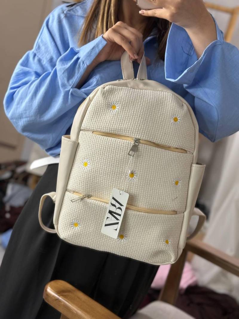 طرح گلهای بابونه روی بدنه کیف، زیبایی ساده و دلنشینی را تداعی میکند که یادآور دشتهای پر از گل در روزهای آفتابی است. رنگآمیزی ظریف و ترکیب ملایم آن با زمینهی کنفی، ظاهری دخترانه، لطیف و کاملاً تابستانی به کیف داده است. این طراحی چشمنواز بهراحتی با لباسهای رنگ روشن، مانتوهای کتان یا پیراهنهای بلند گلدار ست میشود.