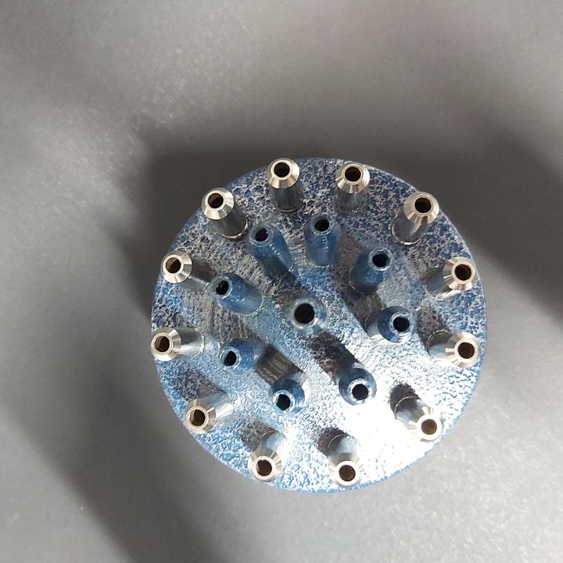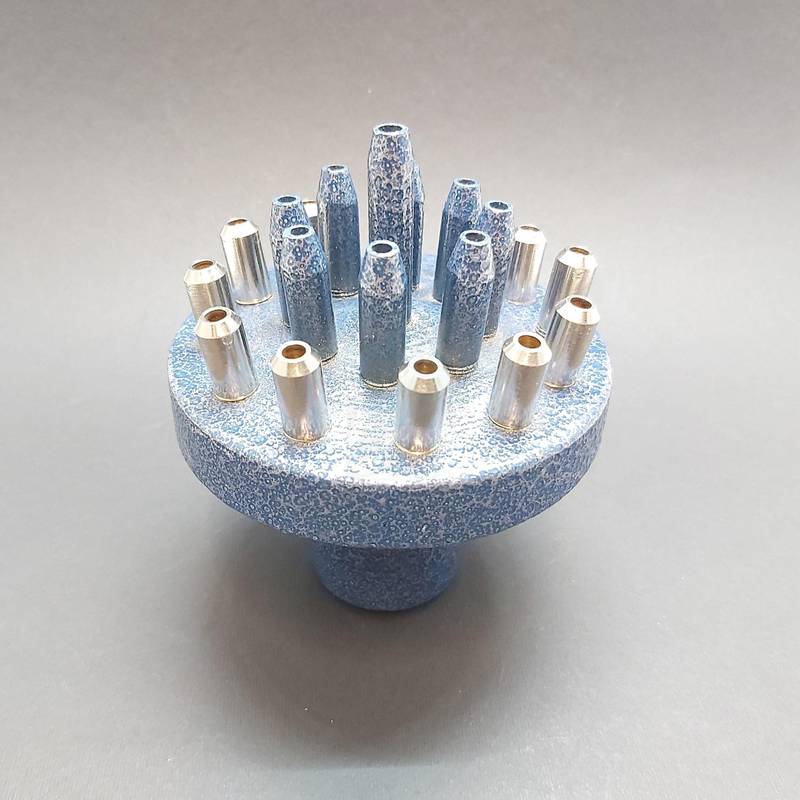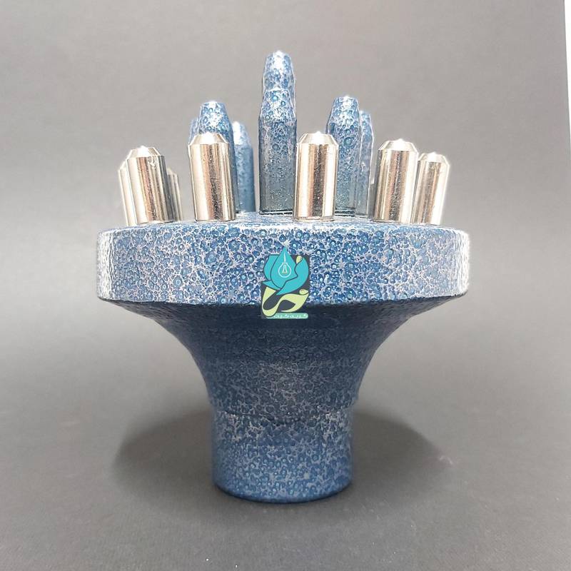 نازل طبقاتی آلومینیوم رنگ کوره ای آبی توپیچ 1 اینچ مدل NTAT1-B محصولی که در تصویر مشاھده می کنید یکی از تجھیزات فواره و آبنما است. این محصول نازل طبقاتی یا چلچه و یا گل نام دارد . این نازل با پرتاب چندین خوشه آبی از مرکز به بیرون می تواند شکل مناسبی مانند گل را در یک یا چند طبقه مختلف برای بیننده به نمایش بگذارد که جزء نازل های طبقاتی به شمار می آید. این نازل می تواند در انواع محیط های دکوری و یا حرفه ای در داخل ساختمان، فضاهای باز، برکه یا دریاچه نصب شود و در محیط پیرامون خود ایجاد نشاط کند. نازل گل به صورت انفرادی استفاده زیادی دارد و طراحان برای ایجاد حجم آب در فضای محیط و یا برای تولید افکتهای زیبا به صورت گروهی هم از این نازل استفاده میکنند. نازلهای گل یا طبقاتی در شب با ترکیب شدن با نور یک اثر خیره کننده و درخشان را ایجاد می نماید.