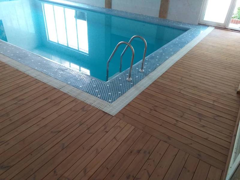 استفاده از چوب ترمو در کناره استخر، علاوه بر ایجاد ظاهری طبیعی، گرم و لوکس، حس آرامش و ارتباط با طبیعت را به فضای شما میآورد. تجربه استراحت روی این سطح چوبی پس از خروج از آب، لذت بینظیری را ایجاد میکند که به رفع خستگی و تجدید قوای جسمی و روحی کمک شایانی مینماید.