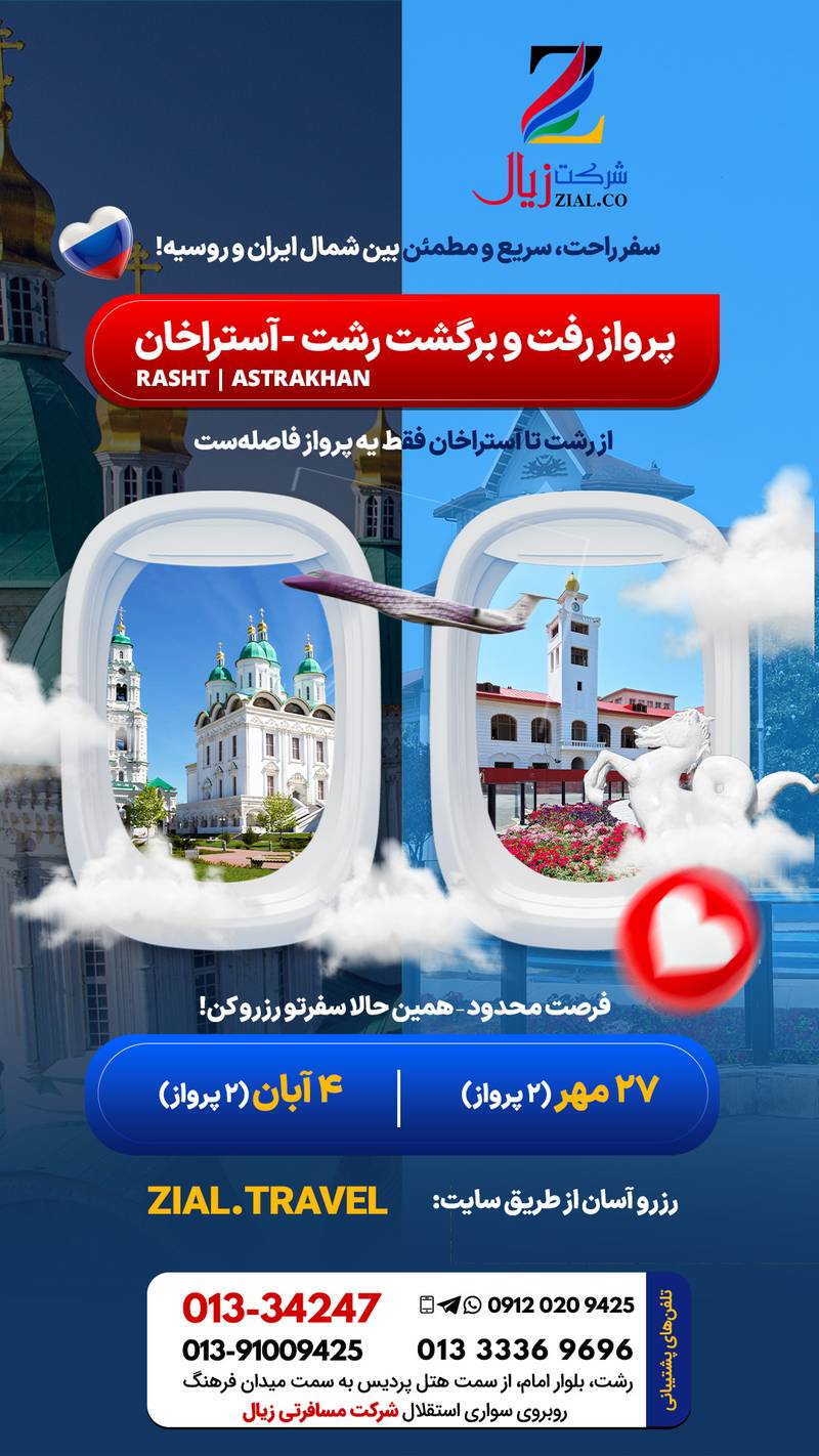 پرواز مستقیم رشت آستراخان و بلعکس از رشت
