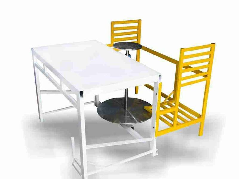 چرخ های سفالگری به صورت تمام فلز بسیار محکم با صفحه گردان با پا از ساخته های این مجموعه تولیدی در شهر لاجین می باشد