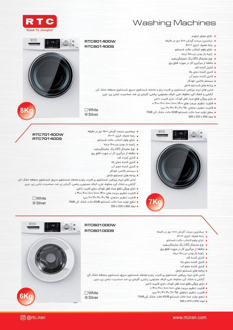 ماشین لباسشویی 8 کیلویی RRC