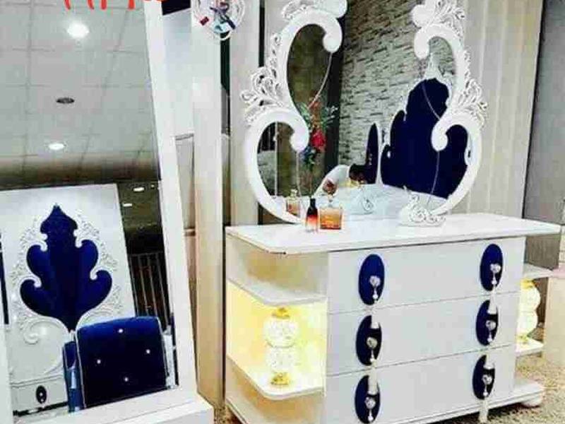 میز آرایشی با چند کشو و آینه قدی با رنگ سفید با دیزاین زیبا