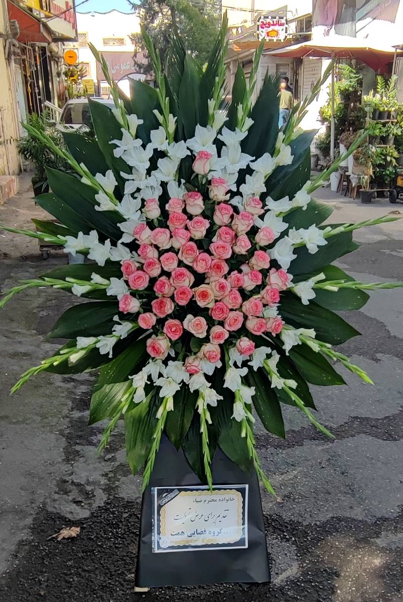 این تاج گل یک طبقه با ترکیب گلایل و رز سفید، انتخابی شایسته و بهیادماندنی برای ادای احترام و عرض تسلیت در دشوارترین لحظات است.