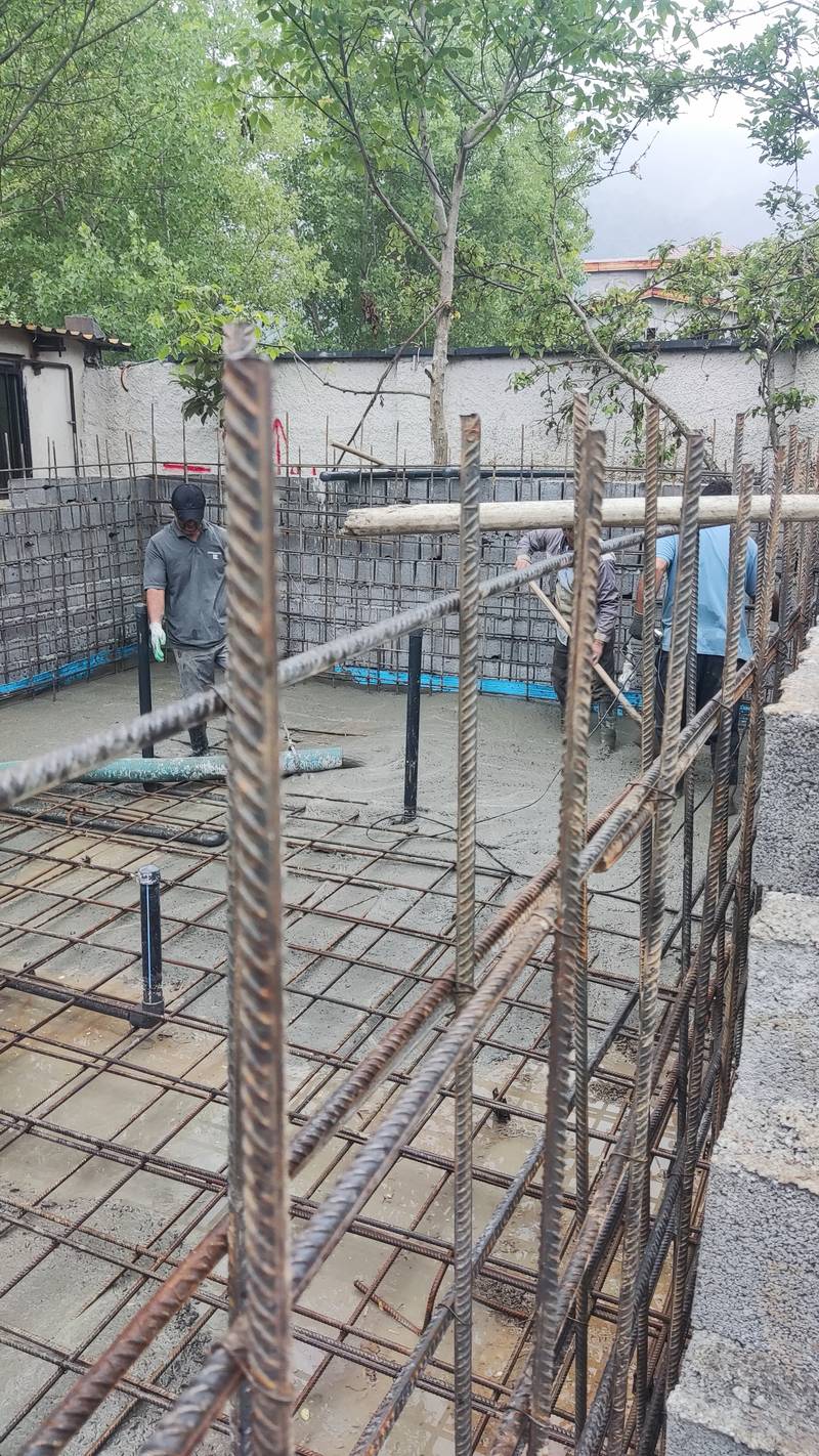 بتن ریزی استخر بتنی با ابعاد ۵ در ۸ متر در روستای ملکار نوشهر
