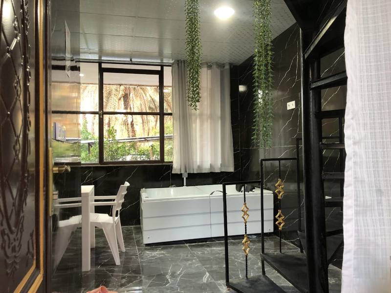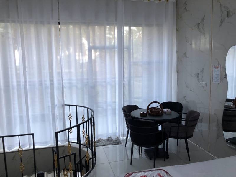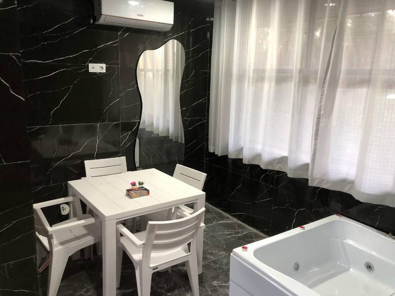 وان جکوزی دونفره و میز و صندلی حمامی چهار نفره در طبقه پایین واحدها تعبیه شده است.