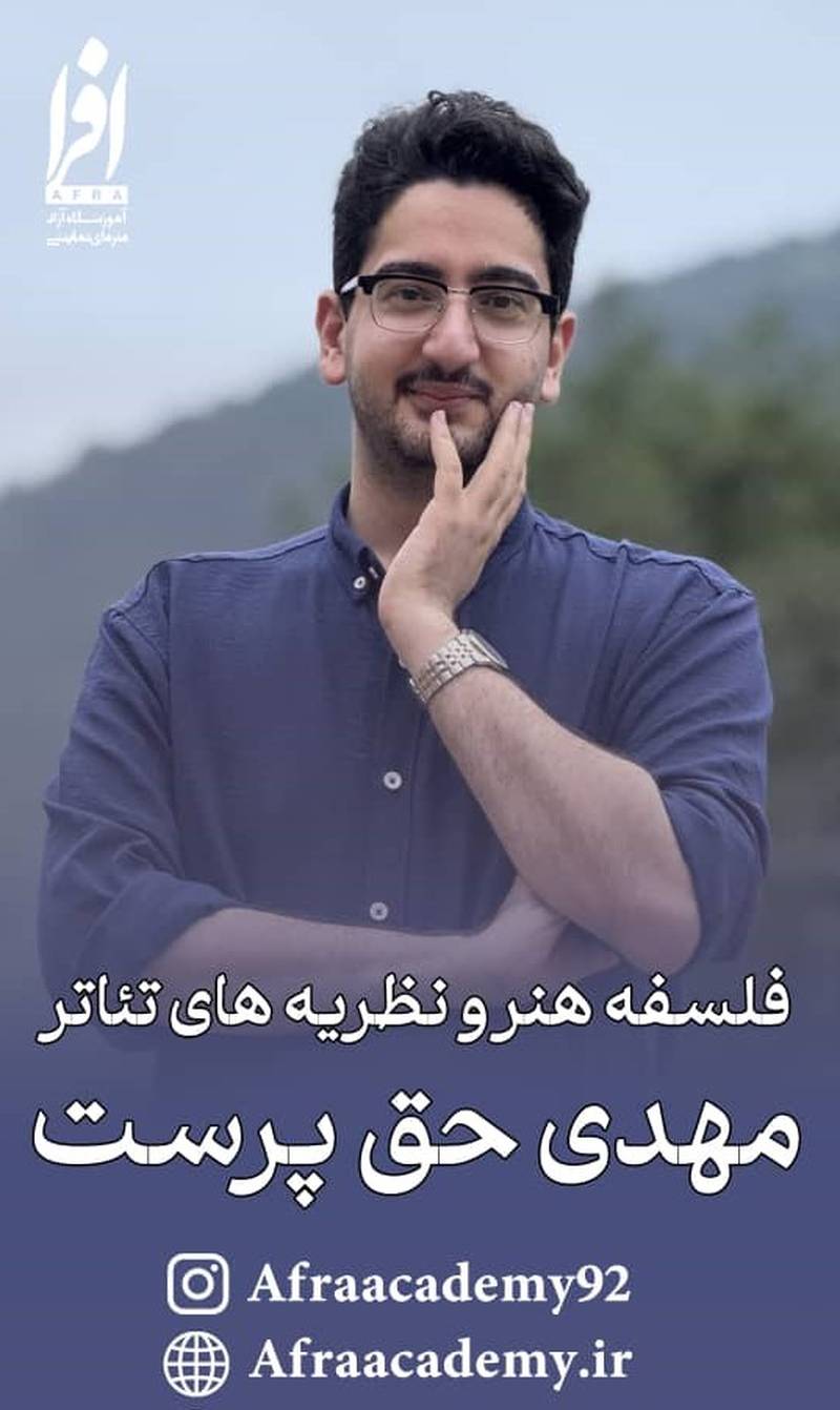 آموزش تخصصی فلسفه هنر و نظریه های تئاتر با تدریس استاد مهدی حق پرست در شهر رشت برگزار می گردد. این دوره های آموزشی توسط آموزشگاه هنرهای نمایشی افرا به صورت کاملا تخصصی و حرفه ای طراحی شده است. اگر به دنبال درک عمیق تر از مبانی نظری هنر و تئاتر هستید، این کلاس ها فرصت مناسبی برای شما خواهد بود. در این دوره ها با ریشه های فکری هنر، مکاتب مختلف فلسفه هنر و مهم ترین نظریه پردازان تئاتر آشنا خواهید شد. محتوای آموزشی به گونه ای تنظیم شده که برای هنرجویان، دانشجویان و تمام علاقه مندان به حوزه نقد و تئوری هنر مفید و کاربردی باشد. آموزشگاه افرا با بهره گیری از اساتید مجرب و ارائه برنامه درسی ساختار یافته، محیطی پربار برای یادگیری فراهم کرده است. برای کسب اطلاعات بیشتر درباره سرفصل های دوره، زمان برگزاری کلاس ها و شرایط ثبت نام می توانید با آموزشگاه هنرهای نمایشی افرا در رشت تماس حاصل فرمایید.